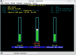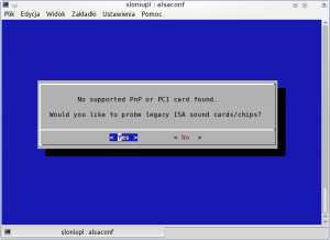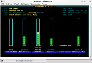 Co najdziwniejsze dźwięk działał, a mikrofonu nie było w alsamixer a kiedy uruchamiałem alsaconf wyskakiwało że nie znaleziono żadnej karty dźwiękowej.