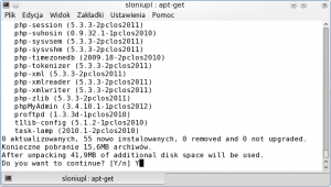 potwierdzamy chęć instalacji nowych pakietów wpisując Y a następnie wciskając Enter
