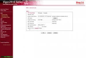 Wciskamy OK i przechodzimy do WAN > Internet access i konfigurujemy WAN 2 wybieramy Access mode jako PPP i klikamy Details Page, którą konfigurujemy tak: