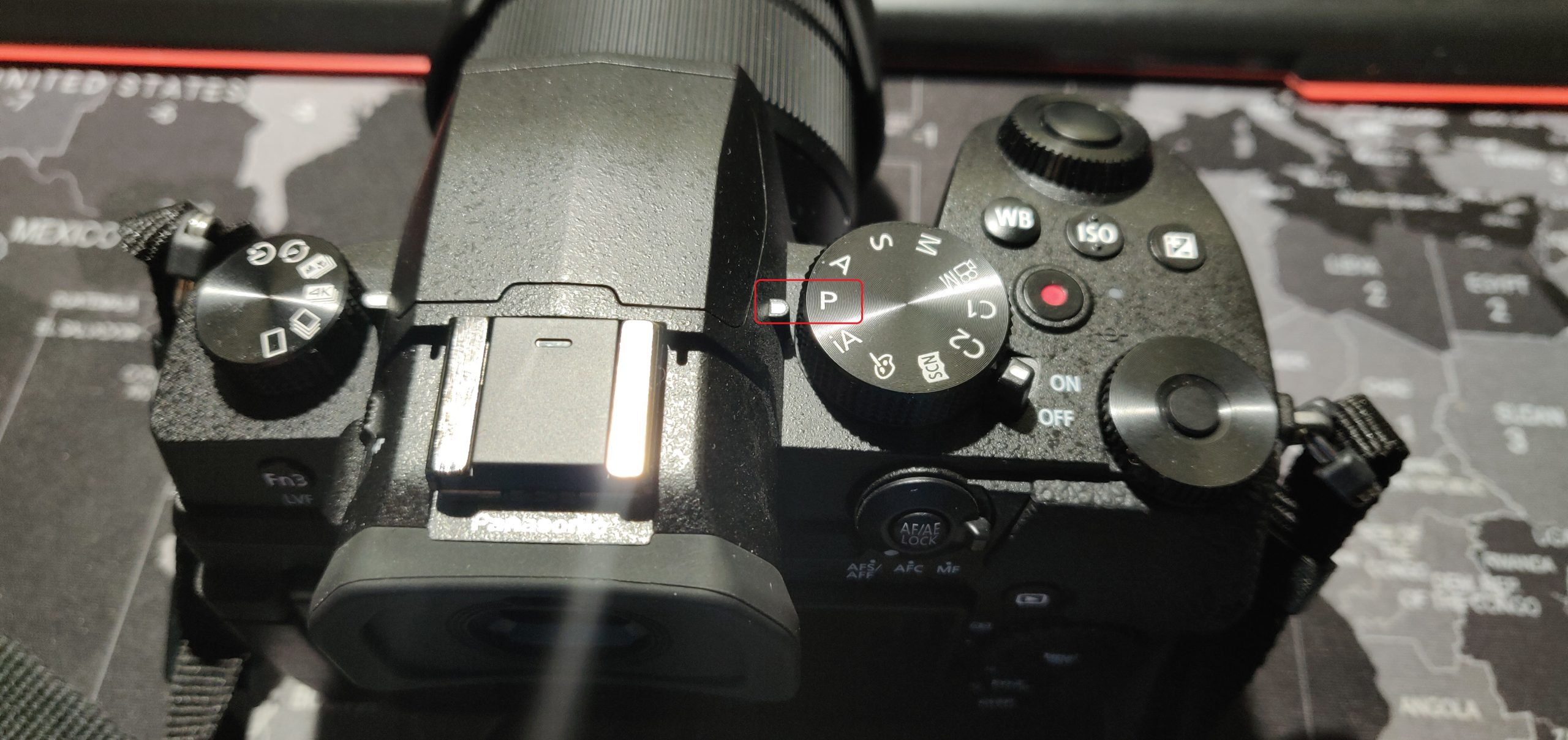 - Po włożeniu karty do aparatu upewniamy się że tryb jest ustawiony na P: