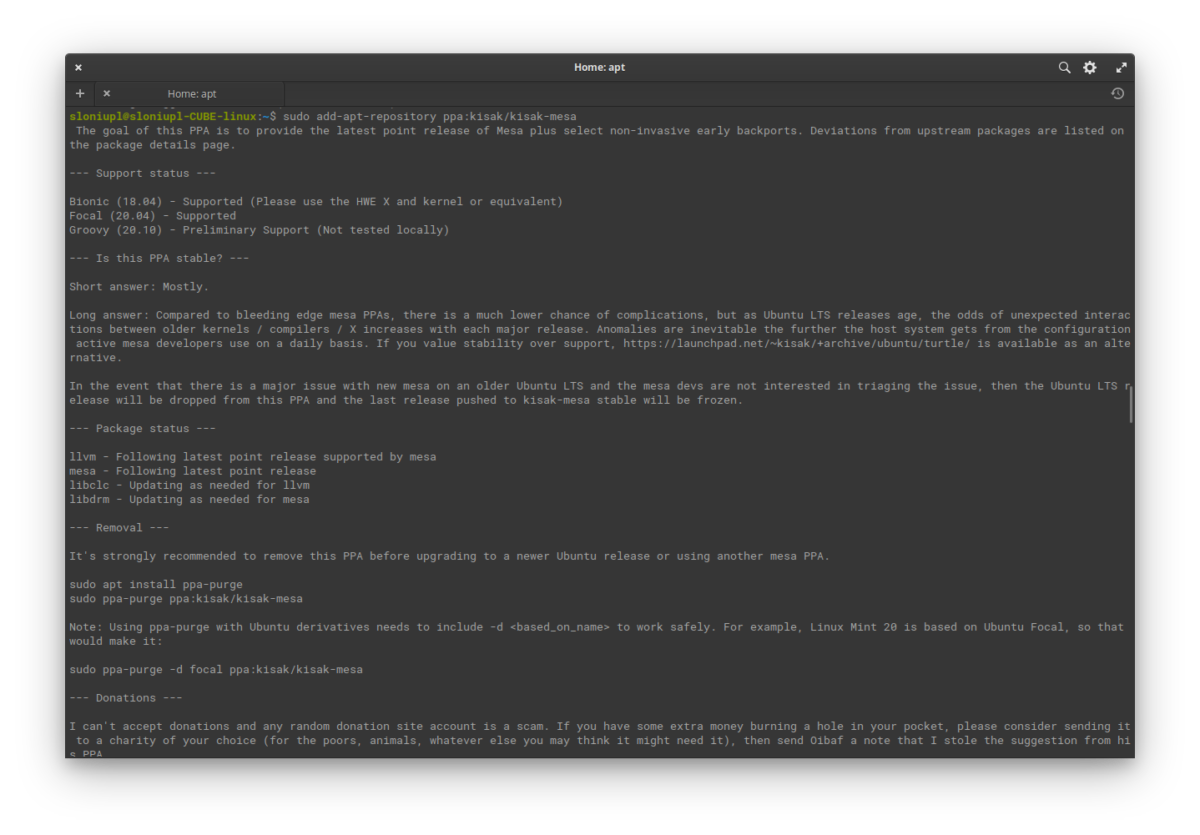 sudo add-apt-repository ppa:kisak/kisak-mesa