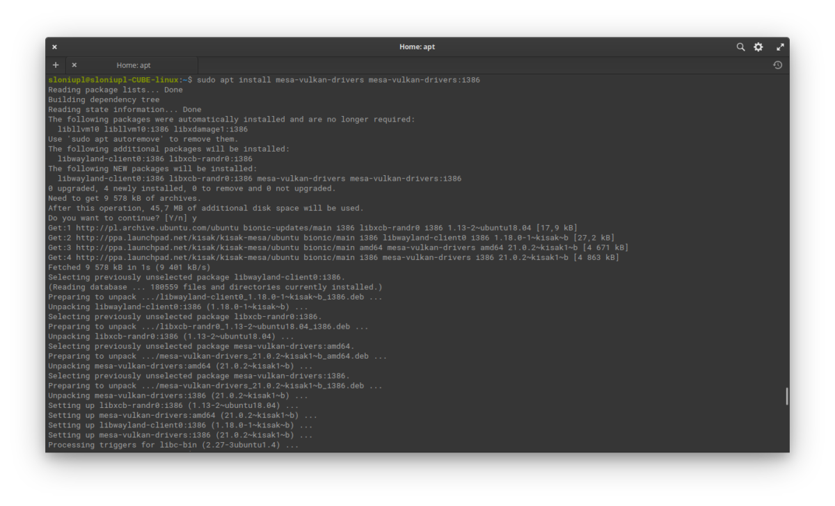 sudo apt install mesa-vulkan-drivers mesa-vulkan-drivers:i386