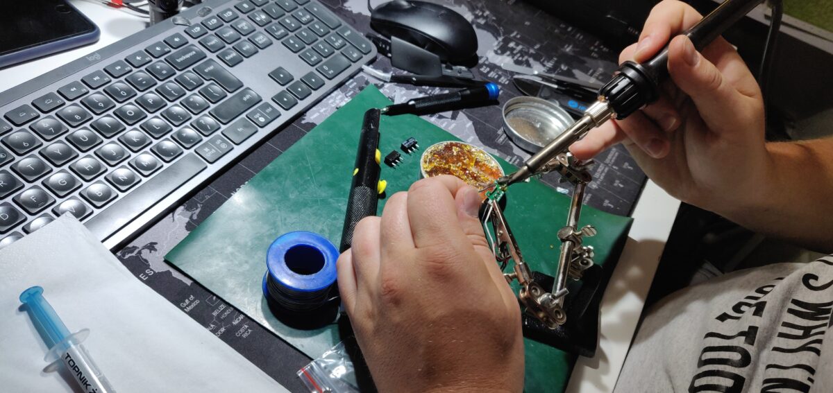 Po rozkręceniu i wyjęciu przycisków możemy zabrać się za lutowanie
