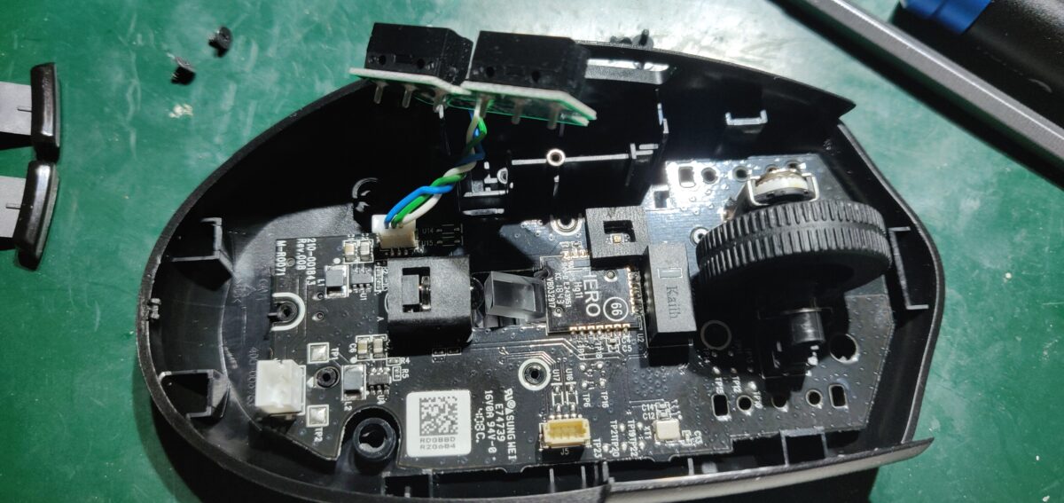 Co ciekawe nawet Logitech w tej myszce użył switcha Kailh do zmiany czułości myszy ale do lewego i prawego zostały użyte switche firmy Omron 🙂