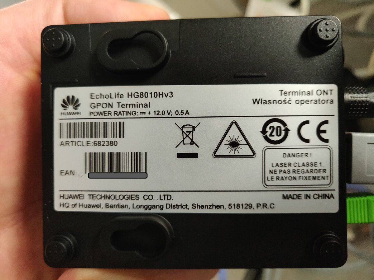 Technik przyjechał z routerem Funbox 6 oraz zewnętrznym ONT Huawei EchoLife HG8010Hv3: