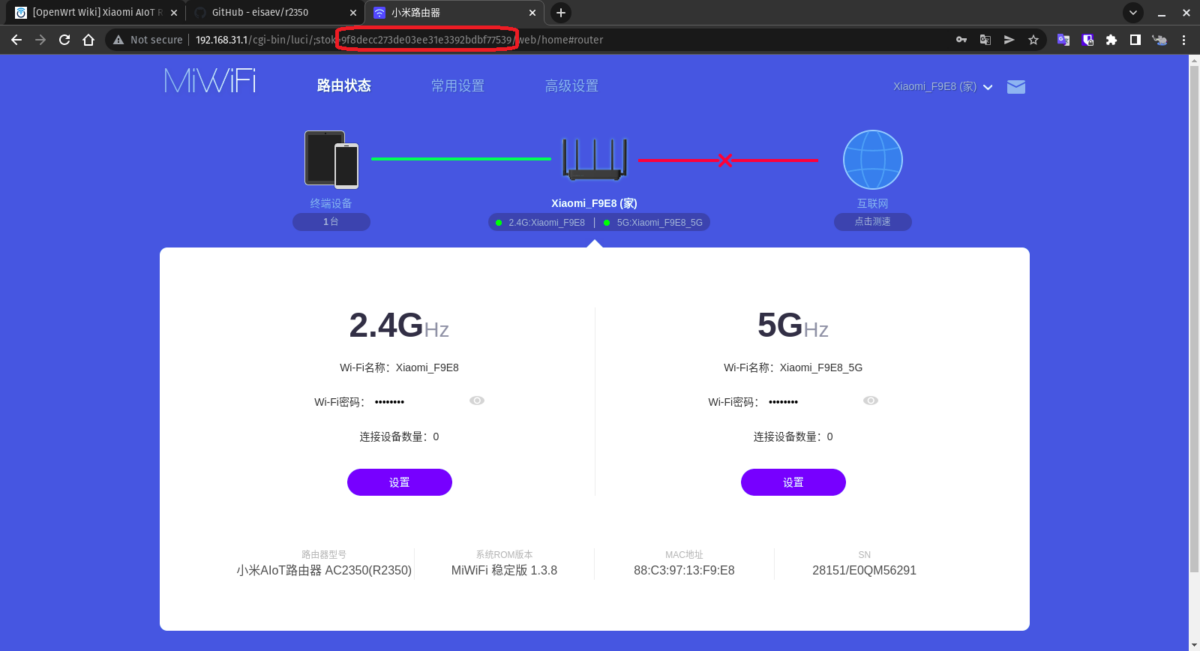 Drugim krokiem jest wgranie do routera starszego, chińskiego oprogramowania. Adres routera to 192.168.31.1.