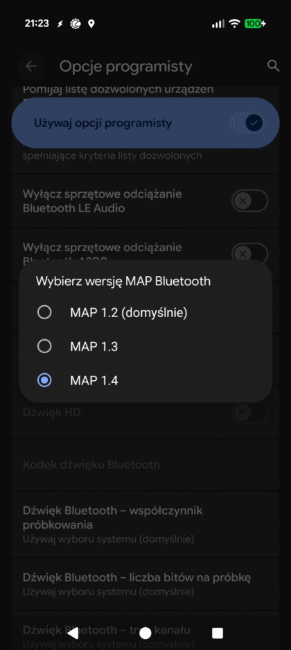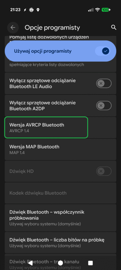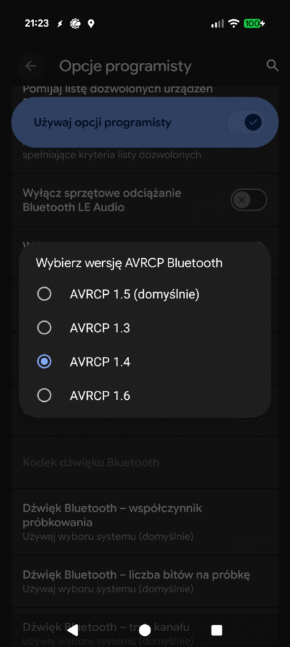 Ustawiamy na AVRCP 1.4 (jeśli to nie pomoże możesz sprawdzić ustawienie na 1.3).
