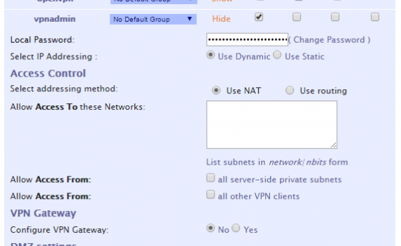 Aby w pełni korzystać z funkcjonalności OpenVPN musimy skonfigurować użytkowników oraz podstawowe opcje serwera. Na szczęście mamy dostępny wygodny interfejs w przeglądarce.